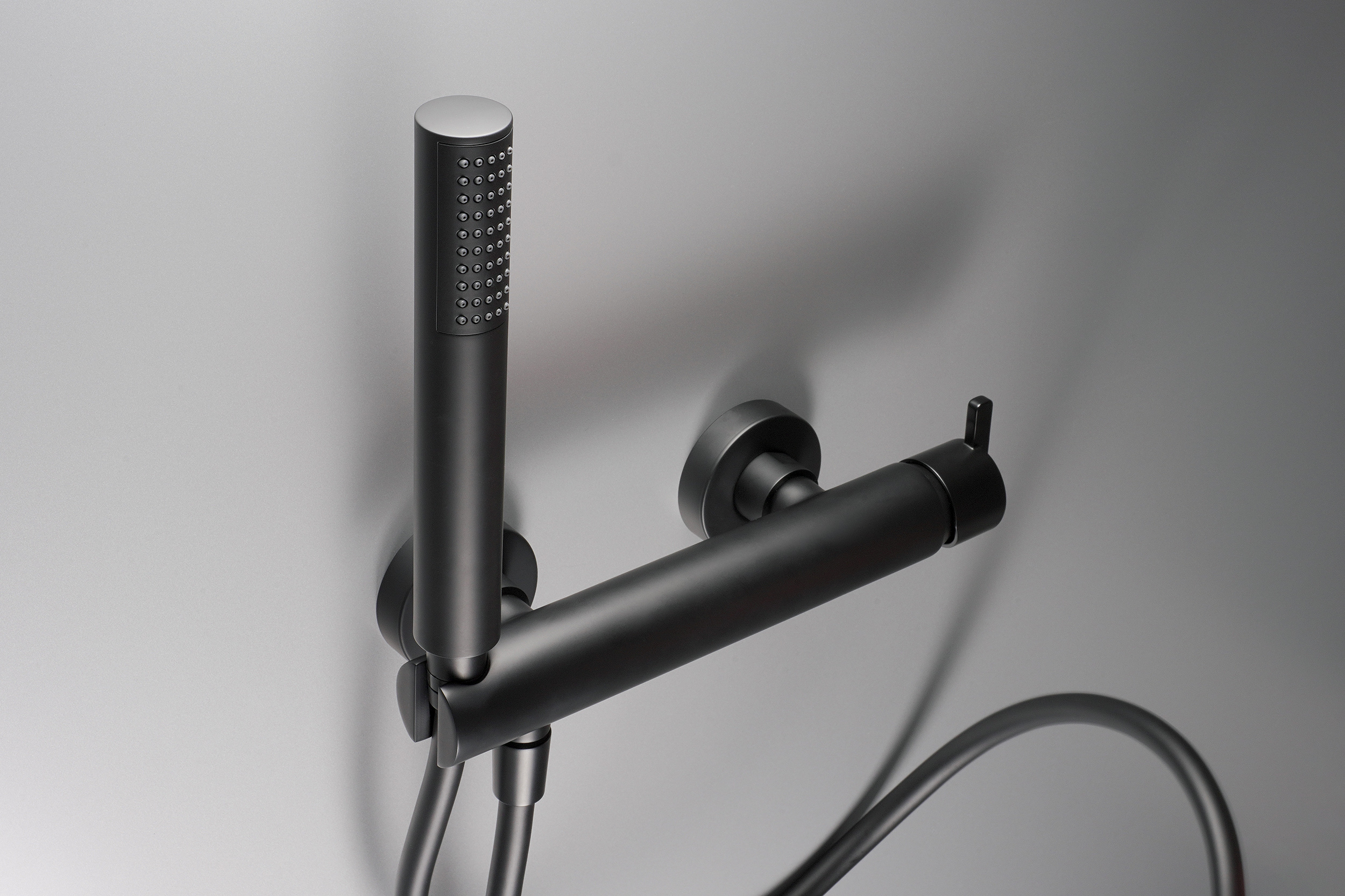Käsiduši hoidja integreeritud segisti korpusega. Saadaval Deante puhastusvahend kõikides värvitoonides segistite puhastamiseks.